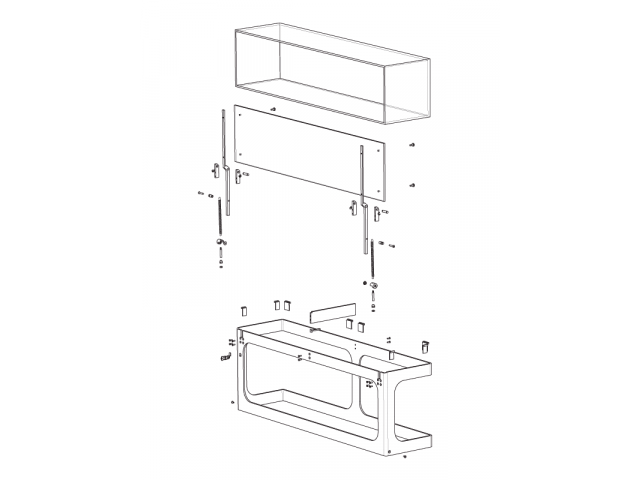 Stahl, Glas | lasergeschnitten, gekantet, geschweißt, brüniert